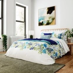 Make a real statement in your bedroom with this stunning floral duvet set with bold flowers in shades of red, coral & gold with vibrant green leaves.